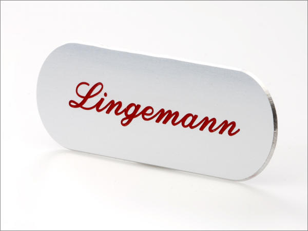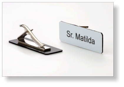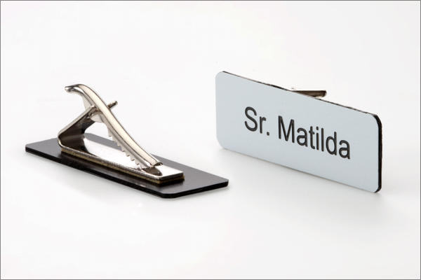 7. Kunststoffnamensschild mit Gravur und Krokoklammer